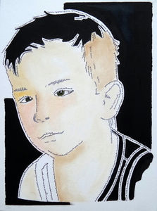 2018Niek in pentekening met acrylverf op papier.