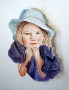 2020Meisje met hoed, pastelkrijt op papier